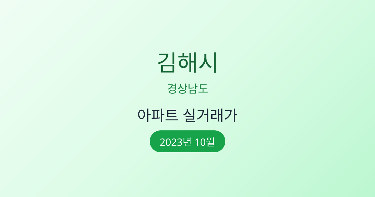 2023년 10월 김해시 부동산 시장 정보 |김해시 아파트 실거래 | 김해시 매매가 조회 |경상남도 김해시 아파트 시세 | 김해시 부동산 정보