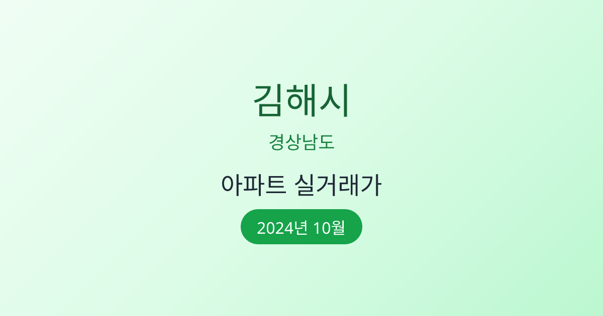 2024년 10월 경상남도 김해시 아파트 매매 실거래가 정보입니다. 국토교통부 공식 데이터를 기반으로 합니다.