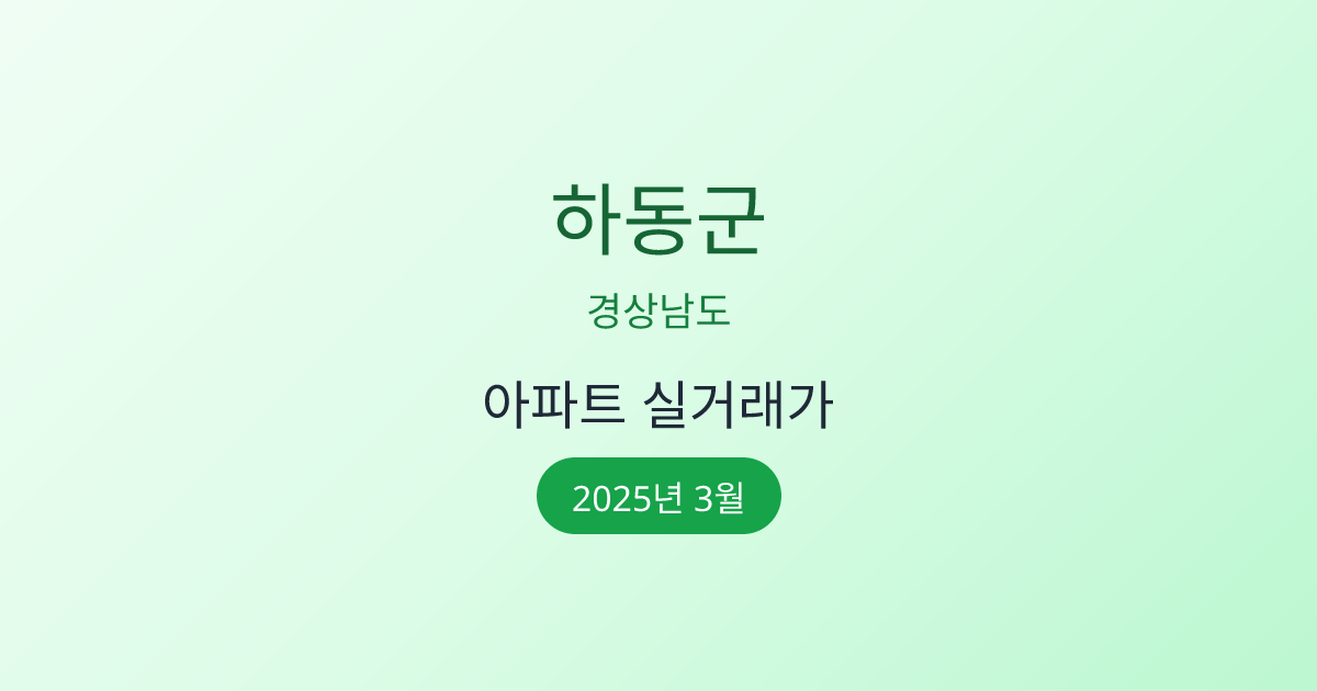2025년 3월 하동군 부동산 시장 정보 |하동군 아파트 실거래 | 하동군 매매가 조회 |경상남도 하동군 아파트 시세 | 하동군 부동산 정보