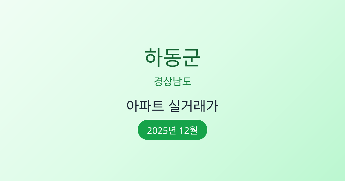 2025년 12월 경상남도 하동군 아파트 매매 실거래가 정보입니다. 국토교통부 공식 데이터를 기반으로 합니다.