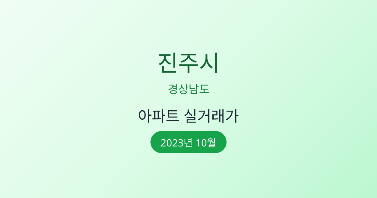 2023년 10월 경상남도 진주시 아파트 매매 실거래가 정보입니다. 국토교통부 공식 데이터를 기반으로 합니다.