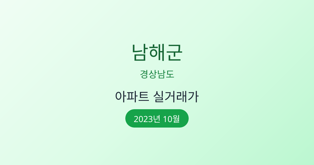 2023년 10월 남해군 부동산 시장 정보 |남해군 아파트 실거래 | 남해군 매매가 조회 |경상남도 남해군 아파트 시세 | 남해군 부동산 정보