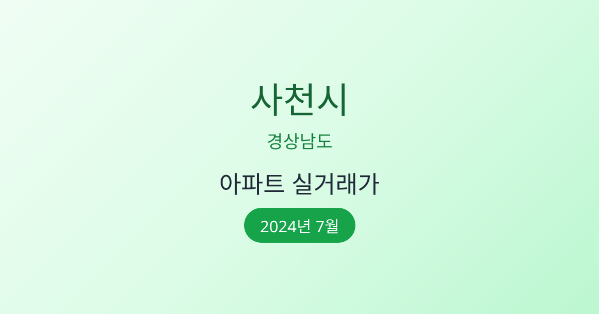 2024년 7월 사천시 부동산 시장 정보 |사천시 아파트 실거래 | 사천시 매매가 조회 |경상남도 사천시 아파트 시세 | 사천시 부동산 정보