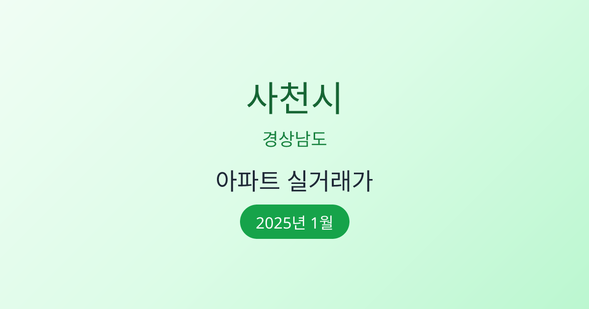 2025년 1월 경상남도 사천시 아파트 매매 실거래가 정보입니다. 국토교통부 공식 데이터를 기반으로 합니다.