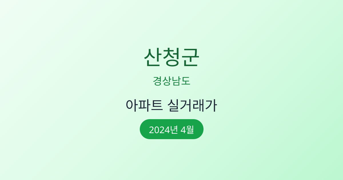 2024년 4월 경상남도 산청군 아파트 매매 실거래가 정보입니다. 국토교통부 공식 데이터를 기반으로 합니다.
