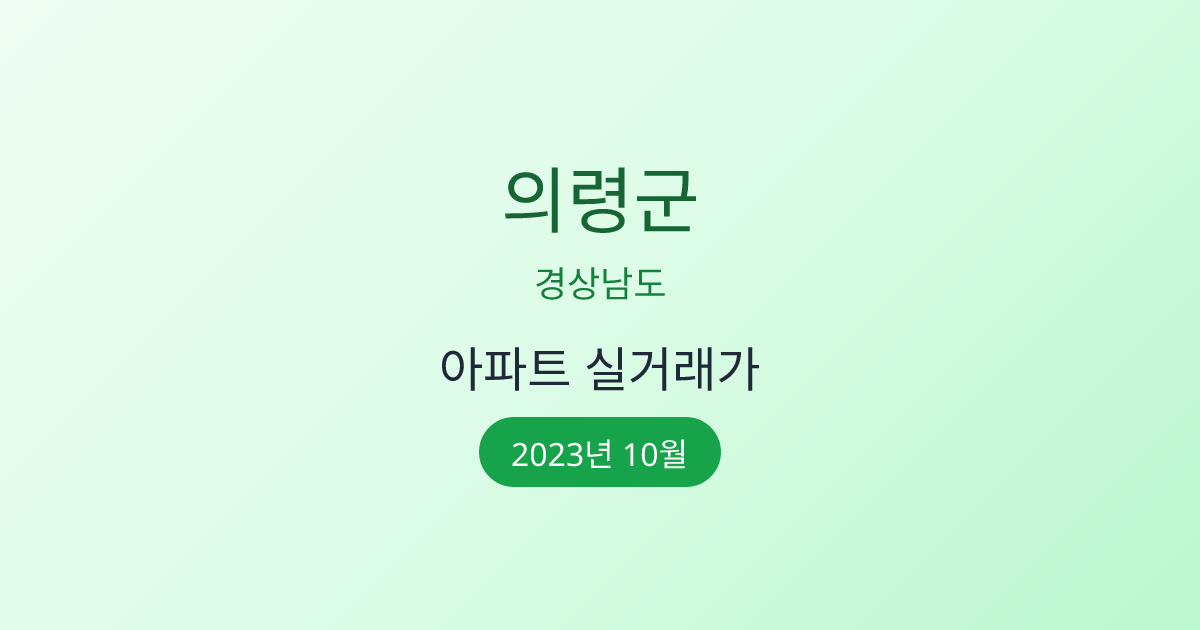 2023년 10월 의령군 부동산 시장 정보 |의령군 아파트 실거래 | 의령군 매매가 조회 |경상남도 의령군 아파트 시세 | 의령군 부동산 정보