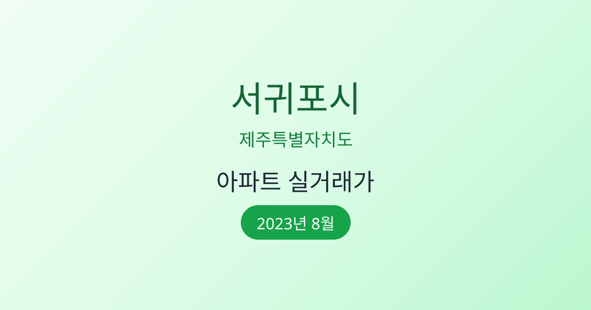2023년 8월 제주특별자치도 서귀포시 아파트 매매 실거래가 정보입니다. 국토교통부 공식 데이터를 기반으로 합니다.