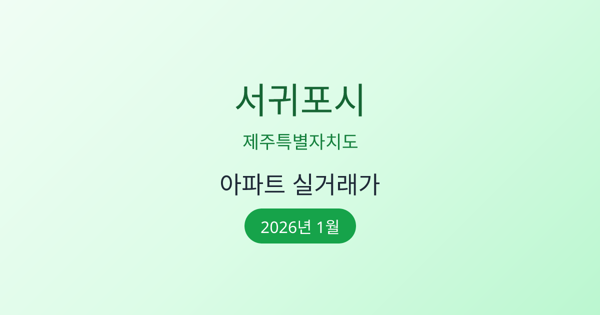 본 페이지는 제주특별자치도 서귀포시 아파트 2026년 1월 실거래가 정보를 제공합니다. 모든 데이터는 국토교통부 실거래가 공개시스템을 기반으로 하며,서귀포시 아파트 매매, 서귀포시 아파트 시세, 서귀포시 평당가,서귀포시 아파트 가격 등의 정보를 확인할 수 있습니다.