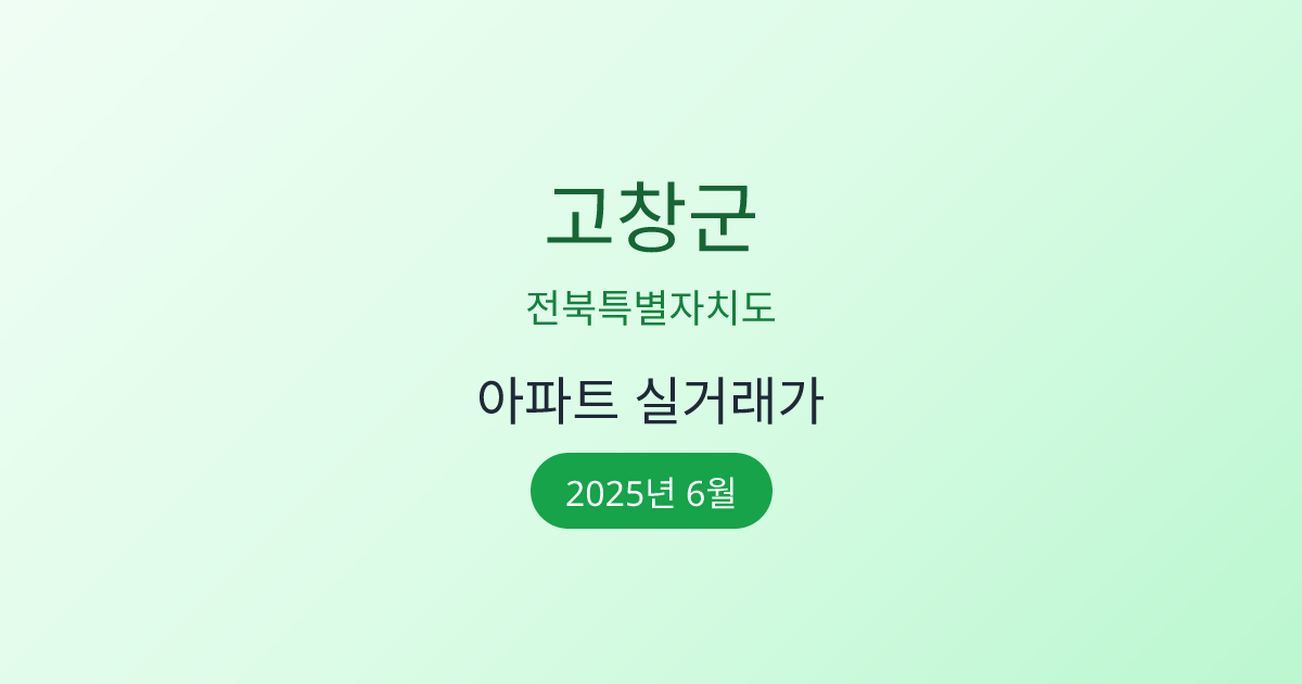 2025년 6월 고창군 부동산 시장 정보 |고창군 아파트 실거래 | 고창군 매매가 조회 |전북특별자치도 고창군 아파트 시세 | 고창군 부동산 정보