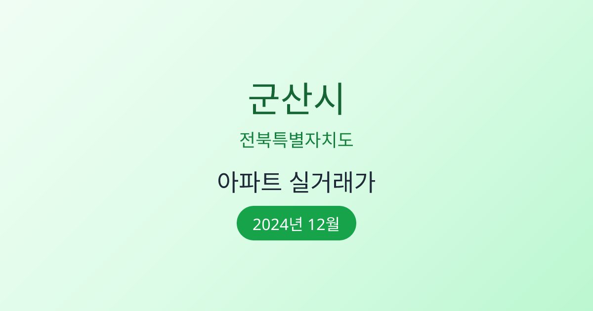 2024년 12월 전북특별자치도 군산시 아파트 매매 실거래가 정보입니다. 국토교통부 공식 데이터를 기반으로 합니다.
