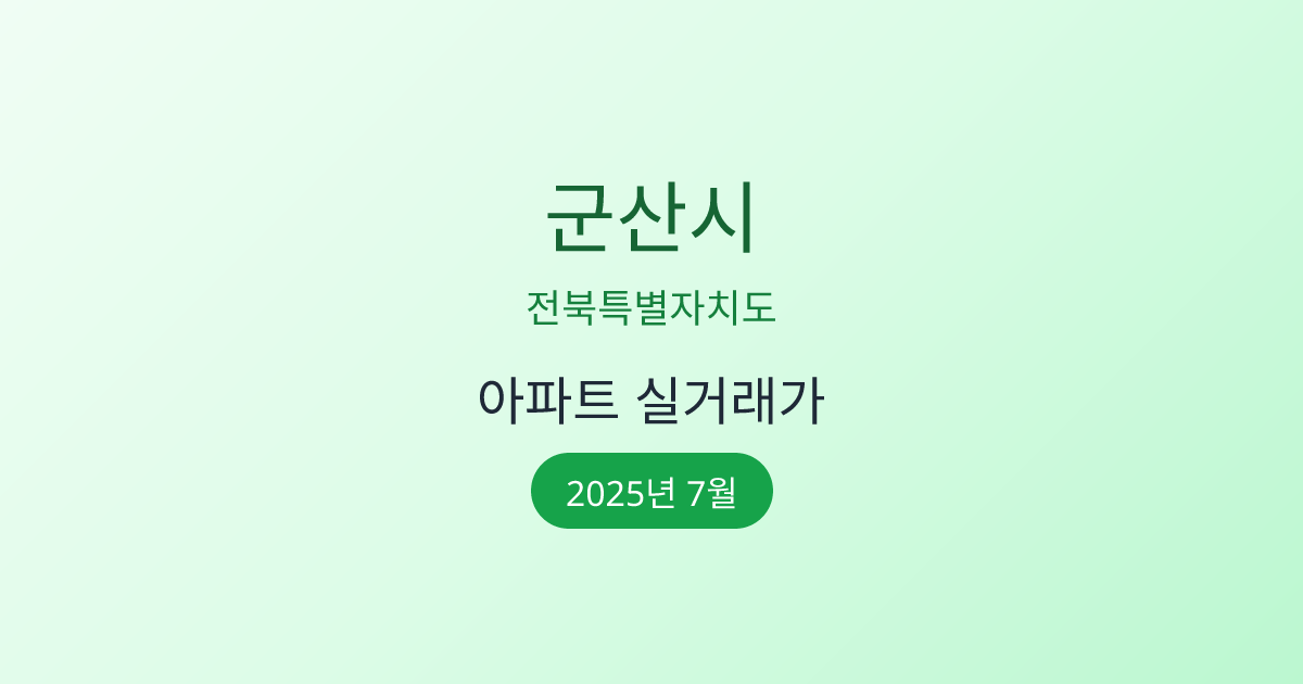 2025년 7월 군산시 부동산 시장 정보 |군산시 아파트 실거래 | 군산시 매매가 조회 |전북특별자치도 군산시 아파트 시세 | 군산시 부동산 정보