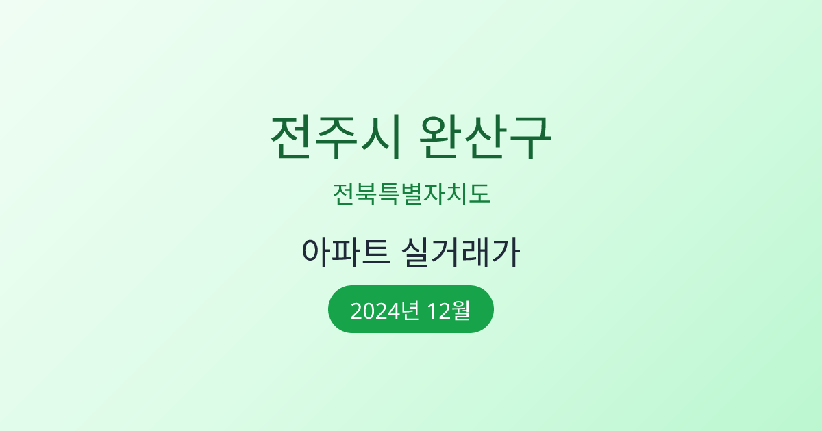 2024년 12월 전주시 완산구 부동산 시장 정보 |전주시 완산구 아파트 실거래 | 전주시 완산구 매매가 조회 |전북특별자치도 전주시 완산구 아파트 시세 | 전주시 완산구 부동산 정보