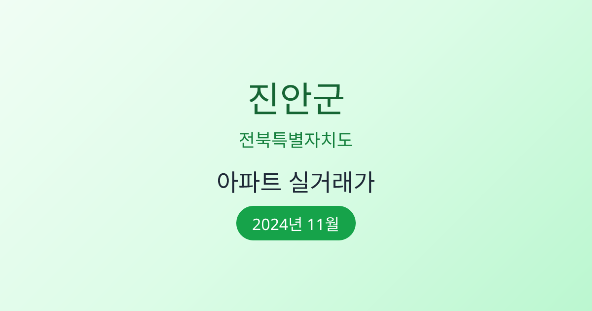 2024년 11월 전북특별자치도 진안군 아파트 매매 실거래가 정보입니다. 국토교통부 공식 데이터를 기반으로 합니다.