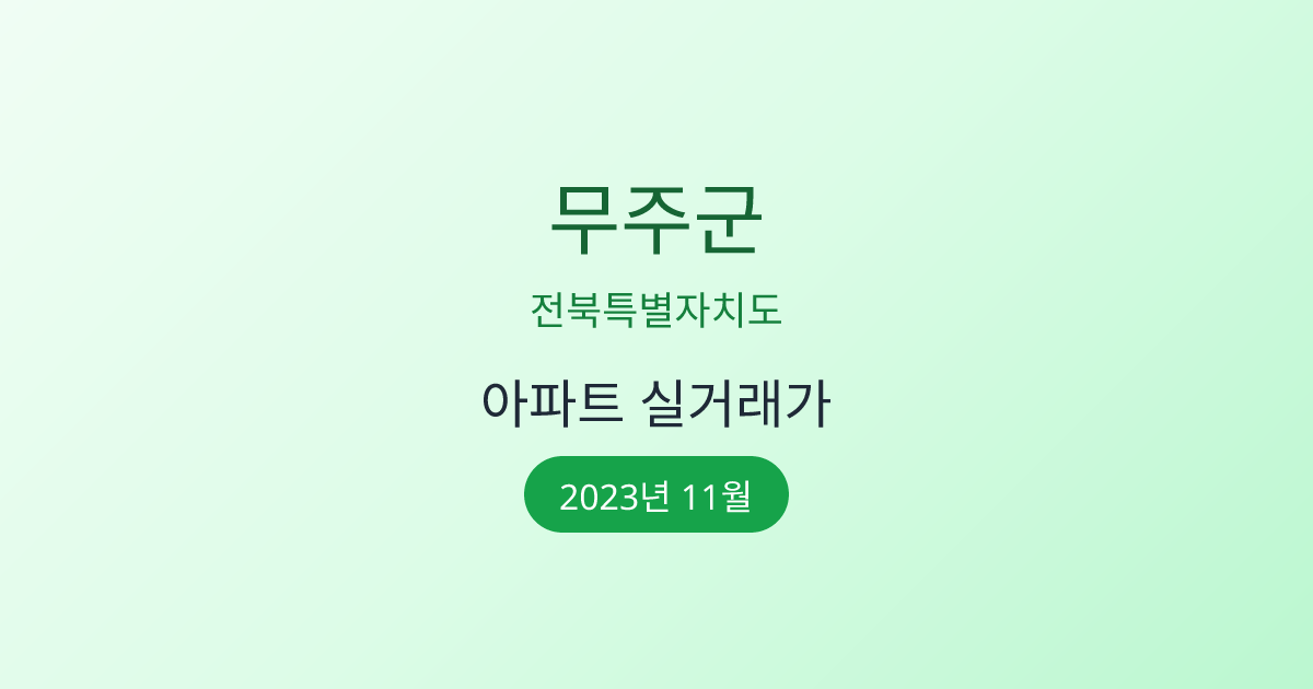 2023년 11월 전북특별자치도 무주군 아파트 매매 실거래가 정보입니다. 국토교통부 공식 데이터를 기반으로 합니다.