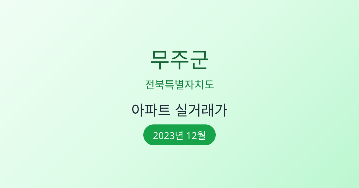 2023년 12월 전북특별자치도 무주군 아파트 매매 실거래가 정보입니다. 국토교통부 공식 데이터를 기반으로 합니다.