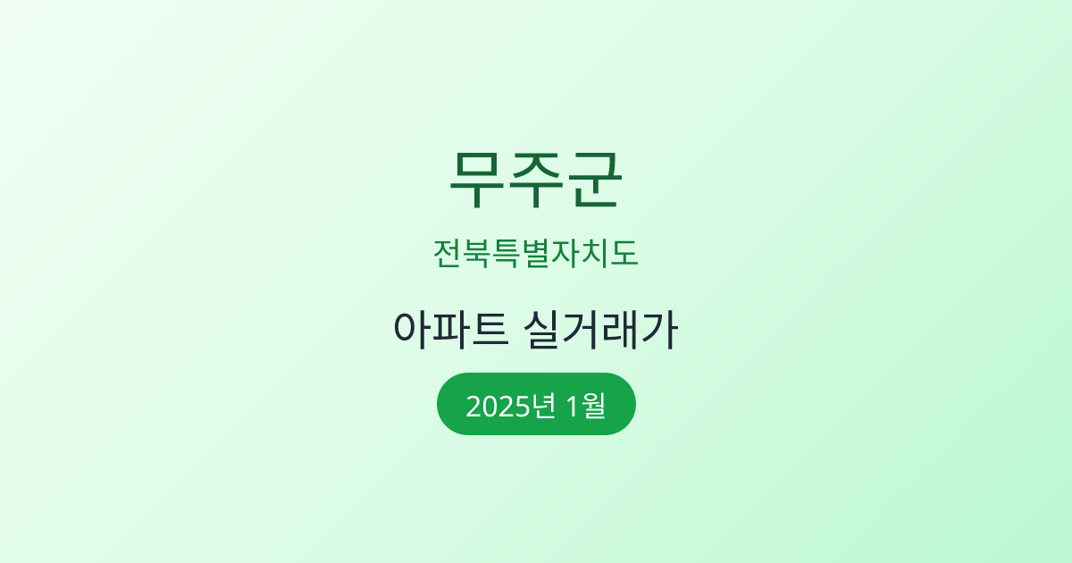 2025년 1월 전북특별자치도 무주군 아파트 매매 실거래가 정보입니다. 국토교통부 공식 데이터를 기반으로 합니다.