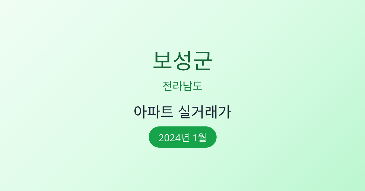 2024년 1월 전라남도 보성군 아파트 매매 실거래가 정보입니다. 국토교통부 공식 데이터를 기반으로 합니다.