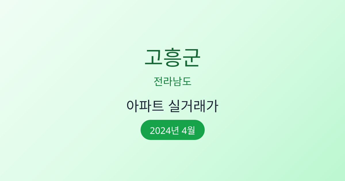 2024년 4월 고흥군 부동산 시장 정보 |고흥군 아파트 실거래 | 고흥군 매매가 조회 |전라남도 고흥군 아파트 시세 | 고흥군 부동산 정보