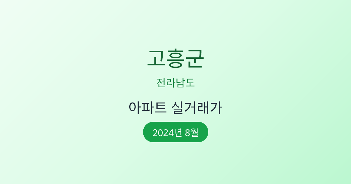 2024년 8월 고흥군 부동산 시장 정보 |고흥군 아파트 실거래 | 고흥군 매매가 조회 |전라남도 고흥군 아파트 시세 | 고흥군 부동산 정보