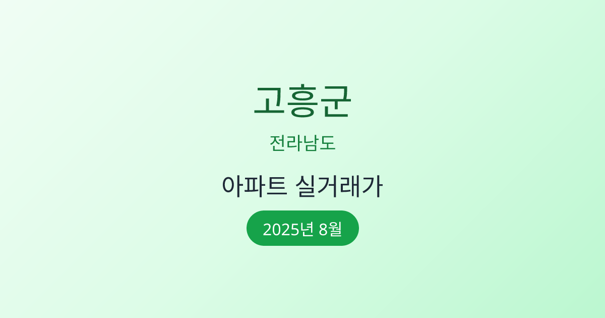 2025년 8월 전라남도 고흥군 아파트 매매 실거래가 정보입니다. 국토교통부 공식 데이터를 기반으로 합니다.
