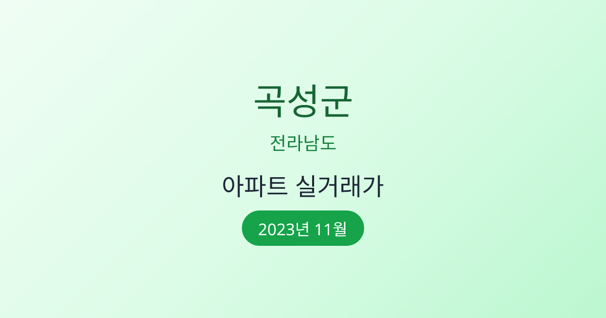 2023년 11월 곡성군 부동산 시장 정보 |곡성군 아파트 실거래 | 곡성군 매매가 조회 |전라남도 곡성군 아파트 시세 | 곡성군 부동산 정보