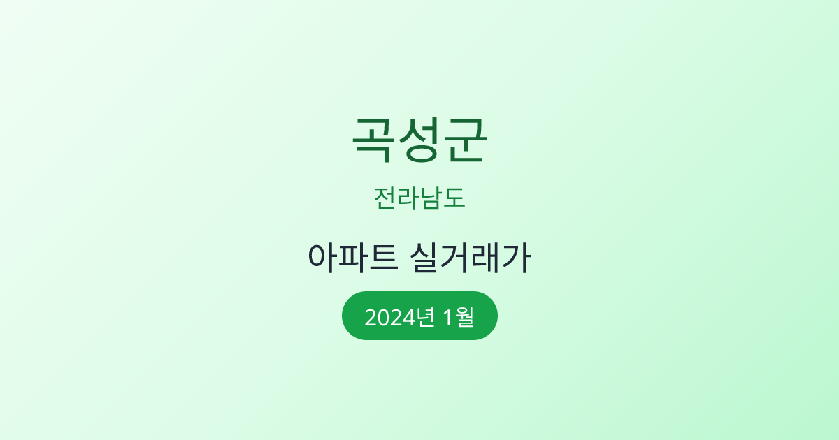 2024년 1월 곡성군 부동산 시장 정보 |곡성군 아파트 실거래 | 곡성군 매매가 조회 |전라남도 곡성군 아파트 시세 | 곡성군 부동산 정보