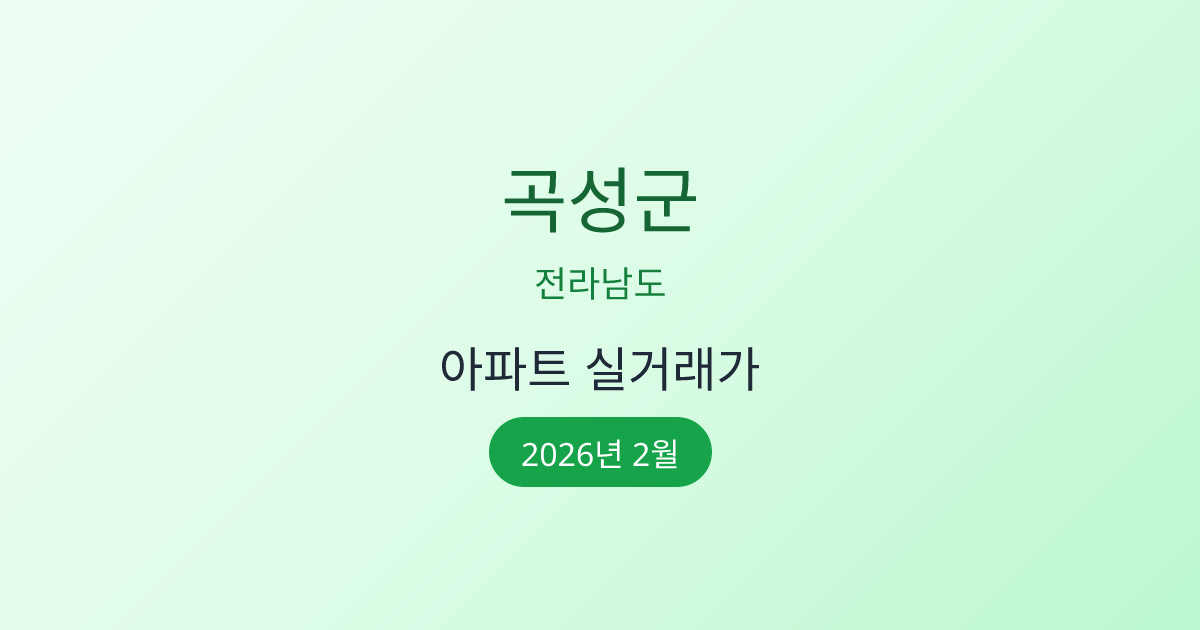 2026년 2월 곡성군 부동산 시장 정보 |곡성군 아파트 실거래 | 곡성군 매매가 조회 |전라남도 곡성군 아파트 시세 | 곡성군 부동산 정보