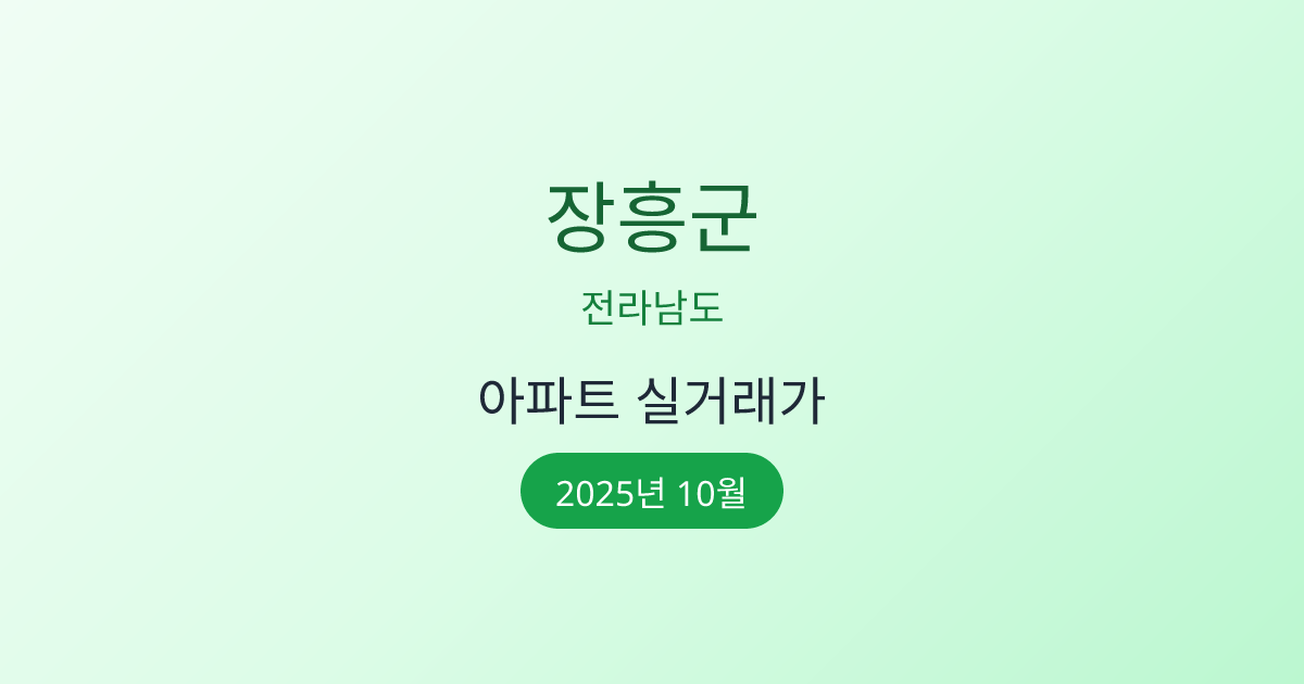 2025년 10월 전라남도 장흥군 아파트 매매 실거래가 정보입니다. 국토교통부 공식 데이터를 기반으로 합니다.