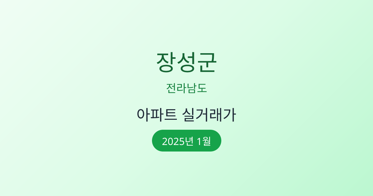 2025년 1월 장성군 부동산 시장 정보 |장성군 아파트 실거래 | 장성군 매매가 조회 |전라남도 장성군 아파트 시세 | 장성군 부동산 정보
