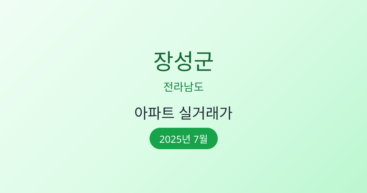 2025년 7월 장성군 부동산 시장 정보 |장성군 아파트 실거래 | 장성군 매매가 조회 |전라남도 장성군 아파트 시세 | 장성군 부동산 정보