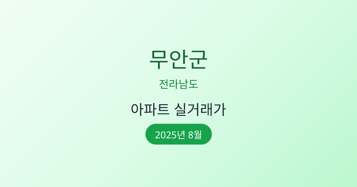 2025년 8월 무안군 부동산 시장 정보 |무안군 아파트 실거래 | 무안군 매매가 조회 |전라남도 무안군 아파트 시세 | 무안군 부동산 정보