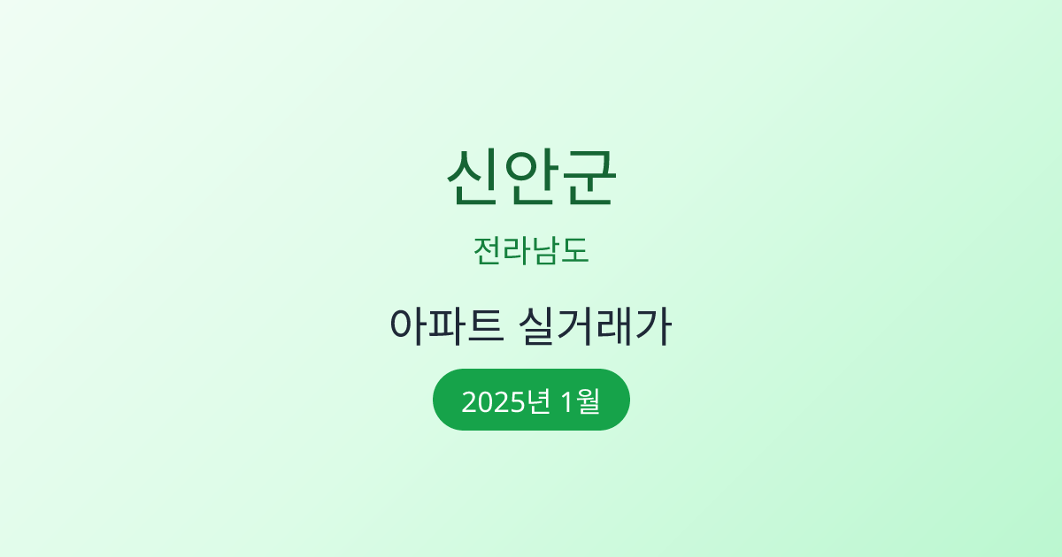 2025년 1월 전라남도 신안군 아파트 매매 실거래가 정보입니다. 국토교통부 공식 데이터를 기반으로 합니다.