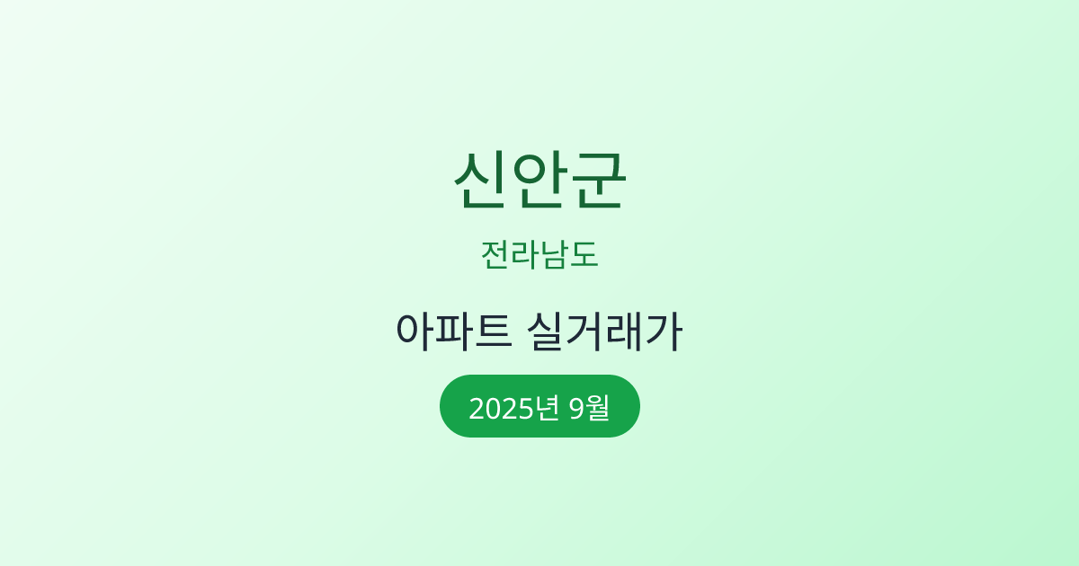 2025년 9월 신안군 부동산 시장 정보 |신안군 아파트 실거래 | 신안군 매매가 조회 |전라남도 신안군 아파트 시세 | 신안군 부동산 정보