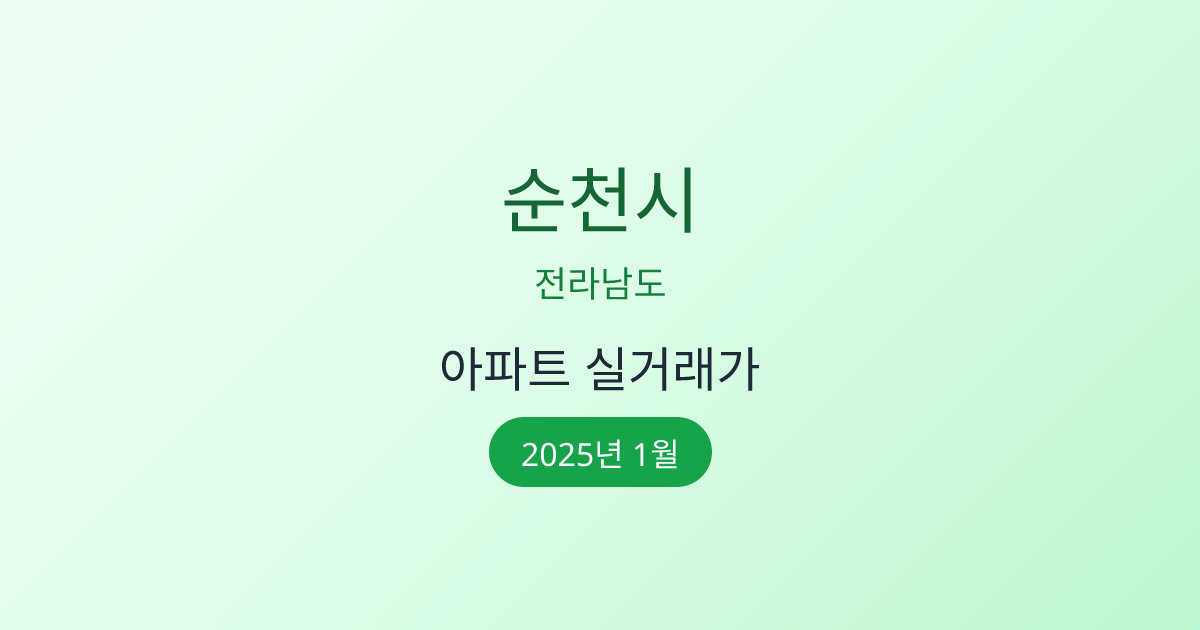 2025년 1월 전라남도 순천시 아파트 매매 실거래가 정보입니다. 국토교통부 공식 데이터를 기반으로 합니다.