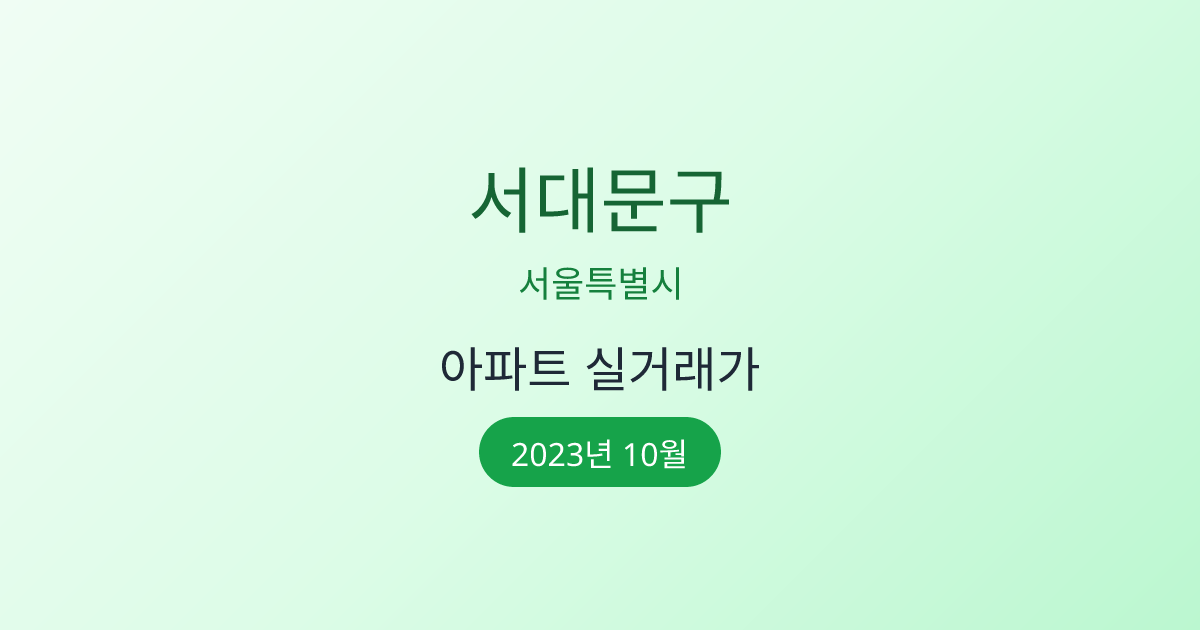 2023년 10월 서울특별시 서대문구 아파트 매매 실거래가 정보입니다. 국토교통부 공식 데이터를 기반으로 합니다.