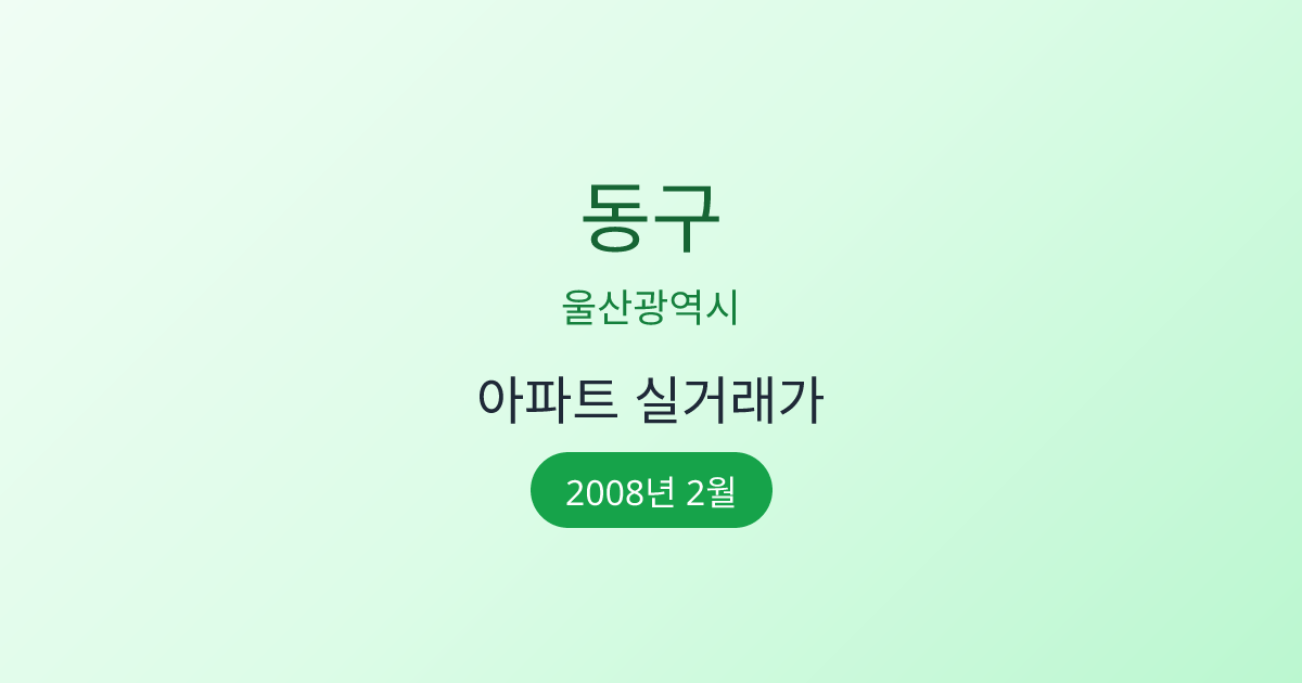 2008년 2월 울산광역시 동구 아파트 매매 실거래가 정보입니다. 국토교통부 공식 데이터를 기반으로 합니다.