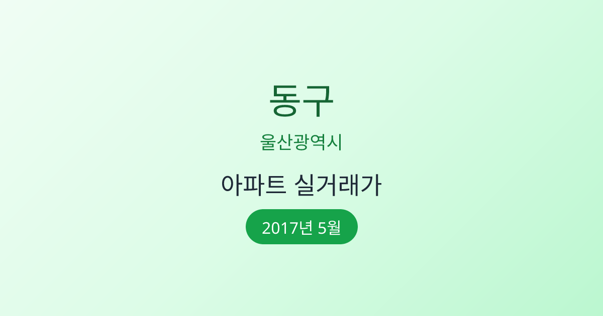 2017년 5월 울산광역시 동구 아파트 매매 실거래가 정보입니다. 국토교통부 공식 데이터를 기반으로 합니다.